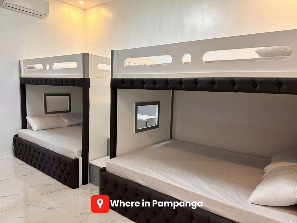 Casa Del Cato has five bedrooms, each with its own personality, ensuring everyone has a cozy spot to rest after a day of fun. The first room we explored is perfect for the younger crowd or the young at heart. With two sturdy double-deck beds and its own private toilet and bath, it’s basically a built-in slumber party zone. Another room offers two queen-sized beds, ideal for families or friends who want extra space. Upstairs, two more bedrooms mirror each other in layout, each comfortably accommodating four guests.
